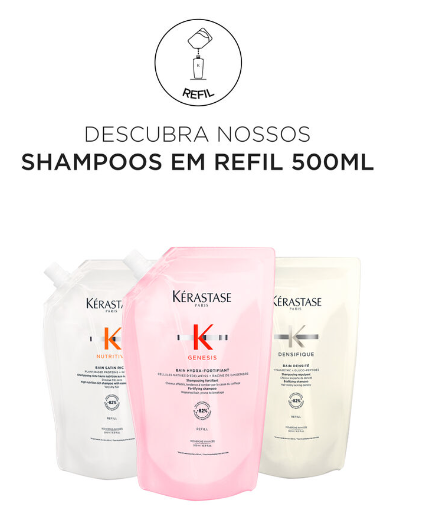O refil de 500ml é a opção ideal para quem busca economia e sustentabilidade, pois utiliza -82% de embalagem plástica* em comparação a dois shampoos de 250ml, e é produzido em uma fábrica waterloop.