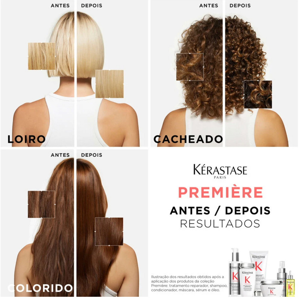 Para maximizar a eficácia, use a técnica de camadas: aplique o tratamento Kérastase Première Concentré Décalcifiant Ultra-Réparateur sem enxaguar e aplique o shampoo Kérastase Première Bain Décalcifiant Réparateur, para uma dose dupla de reparação completa.